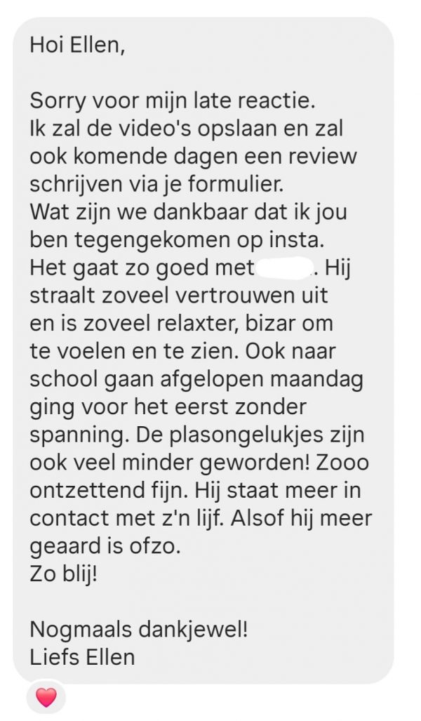 Door de energetische verbinding die jij hebt met je kind, kan ik via jou werken. Zo hoeft je kind niet belast te worden en ontstaat er toch beweging en heling.